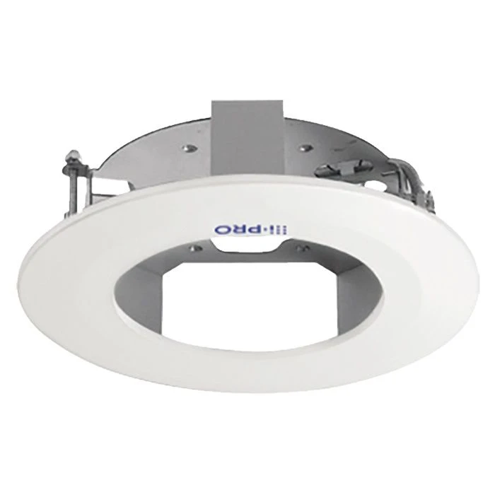 The i-Pro WV-QEM100-W Embedded Ceiling Mount Bracket is used to securely install a camera onto a ceiling. Because it is embedded, the exposed portion of the camera body is reduced.