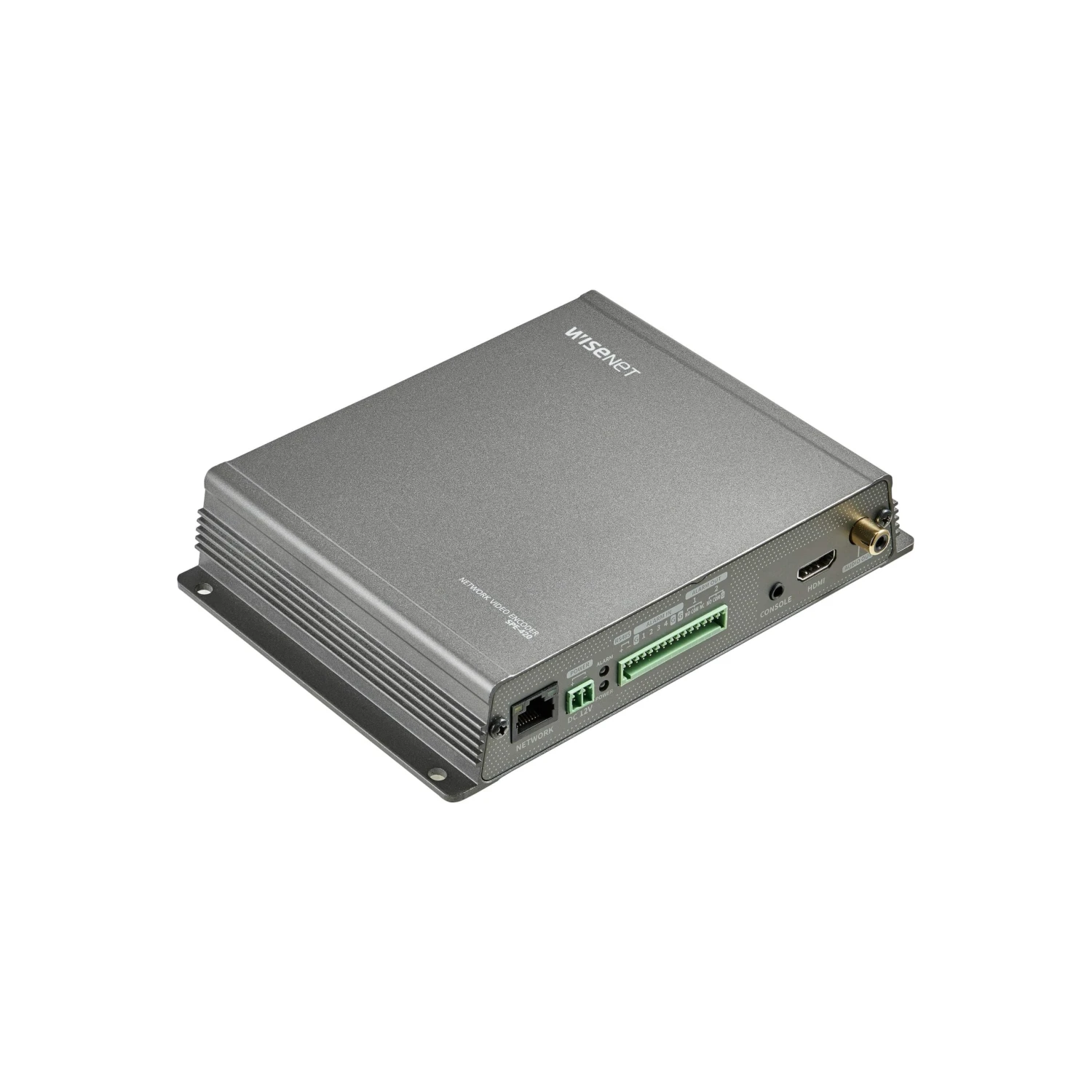 The Wisenet SPE-420 is a 4-channel video encoder, supporting up to 4 cameras and a 5-megapixel resolution.